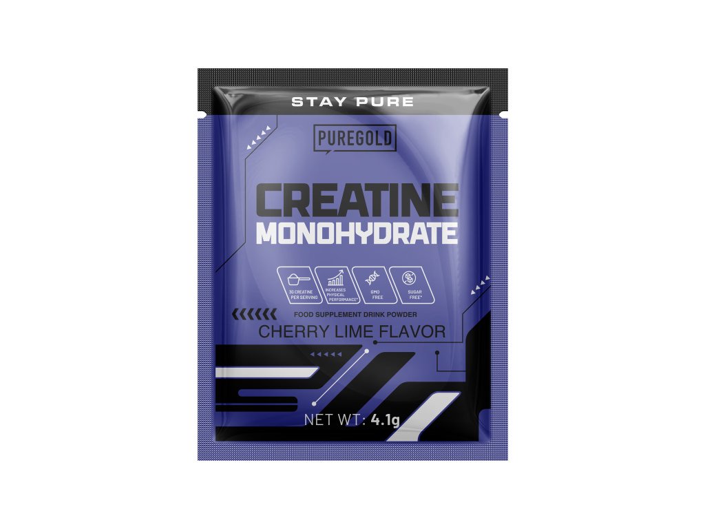 Kreatin Monohydrate – PureGold 4,1 g je praktická jednorázová porce 100% čistého kreatinu monohydrátu, ideální pro sportovce, kteří chtějí okamžitě podpořit sílu, výkon a svalovou práci bez nutnosti nosit velké balení. Perfektní volba na cesty, do fitka nebo k vyzkoušení účinků kreatinu.